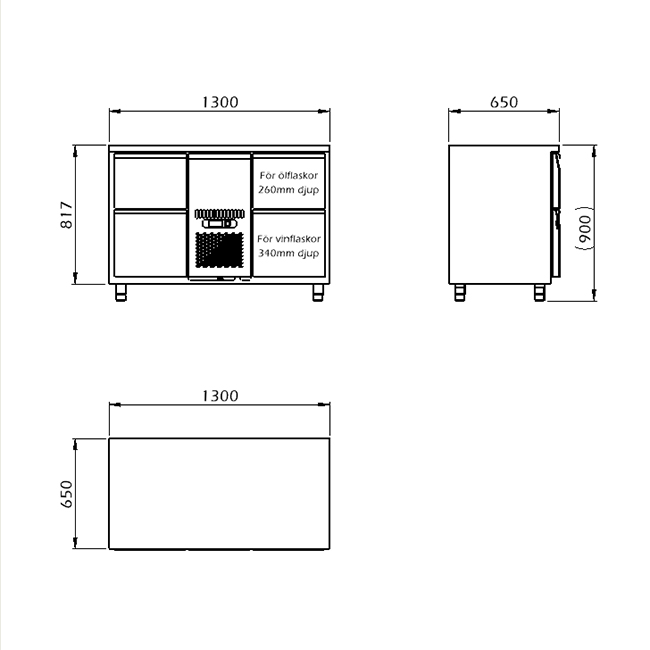 • Övre lådmodul är anpassad för ölflaskor och nedre lådmodul är anpassad för vinflaskor.
