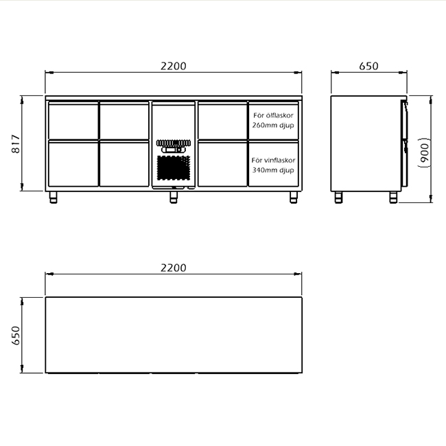 • Övre lådmodul är anpassad för ölflaskor och nedre lådmodul är anpassad för vinflaskor.
