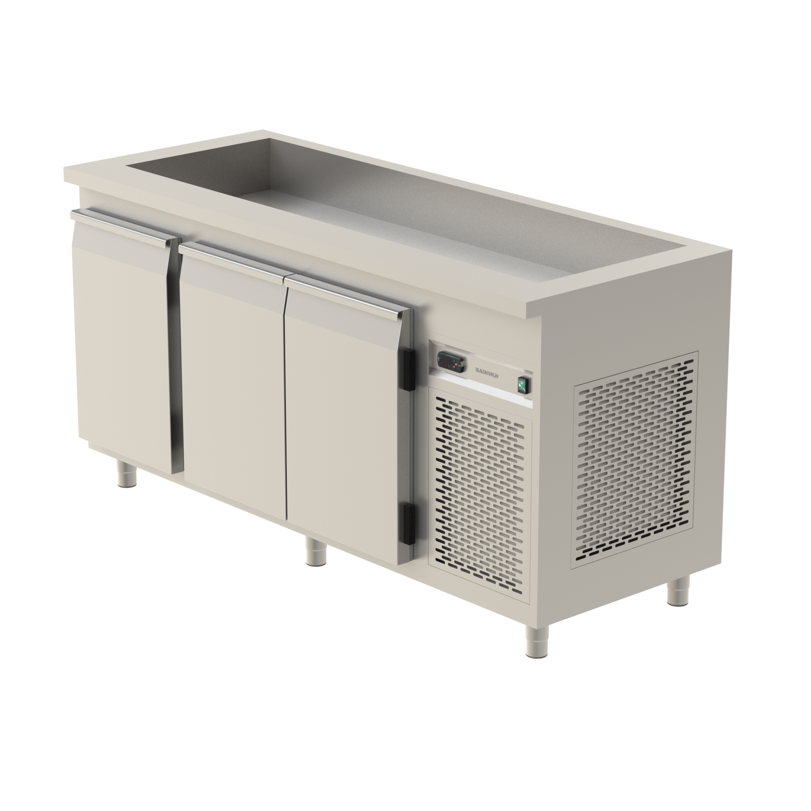 - Toppskivan förses med en kyld brunn anpassad för 1/1 GN-kantiner.