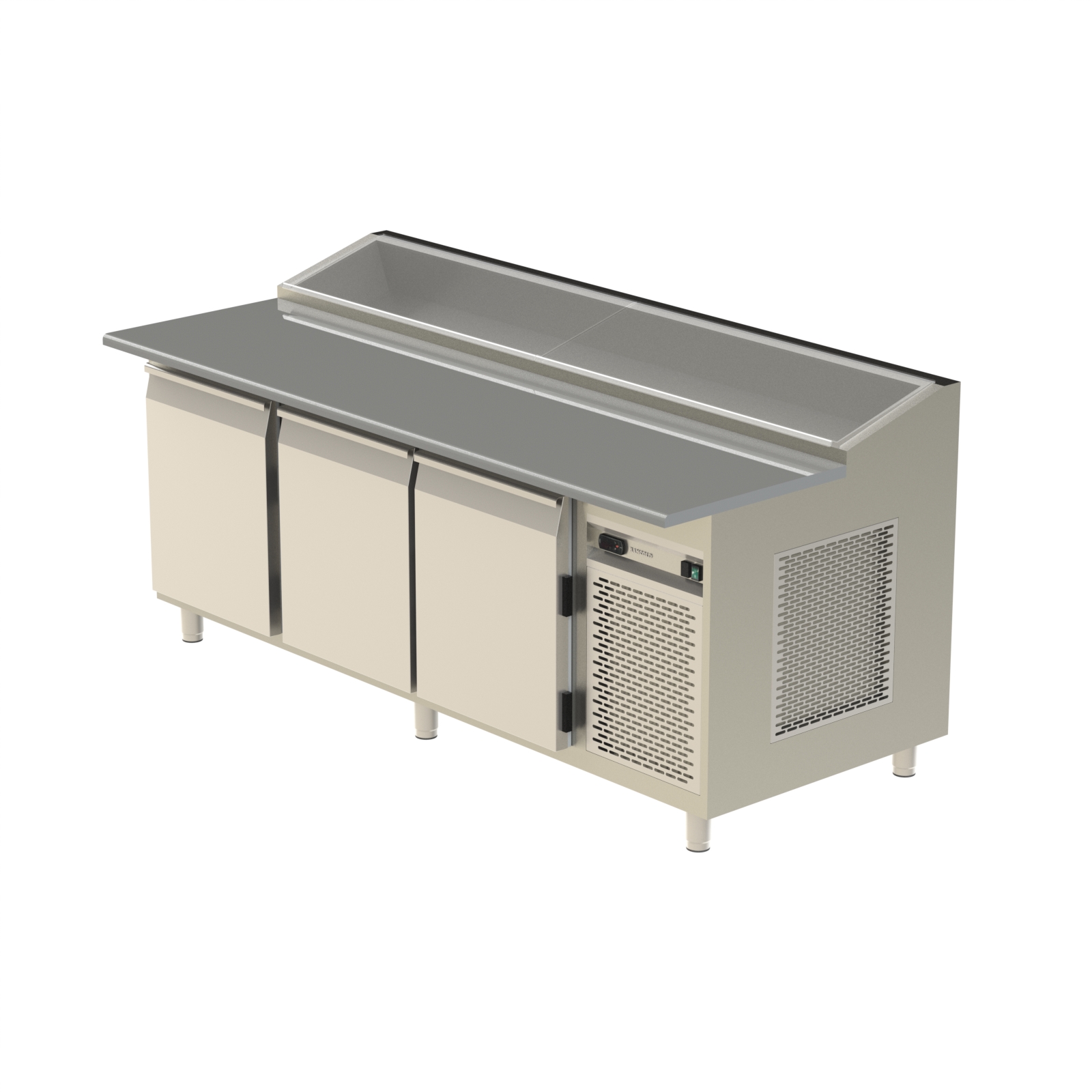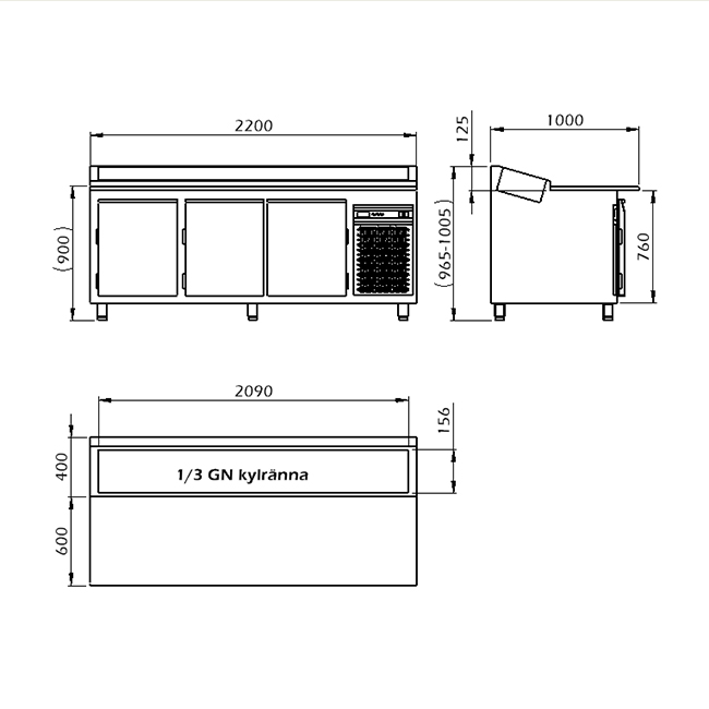 - Förses med lutad kylränna med lock anpassad för 1/3 GN-kantiner.