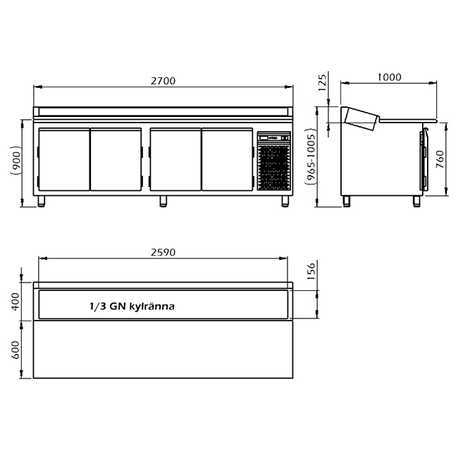 - Kapacitet: 15 x 1/3 GN i kylrännan