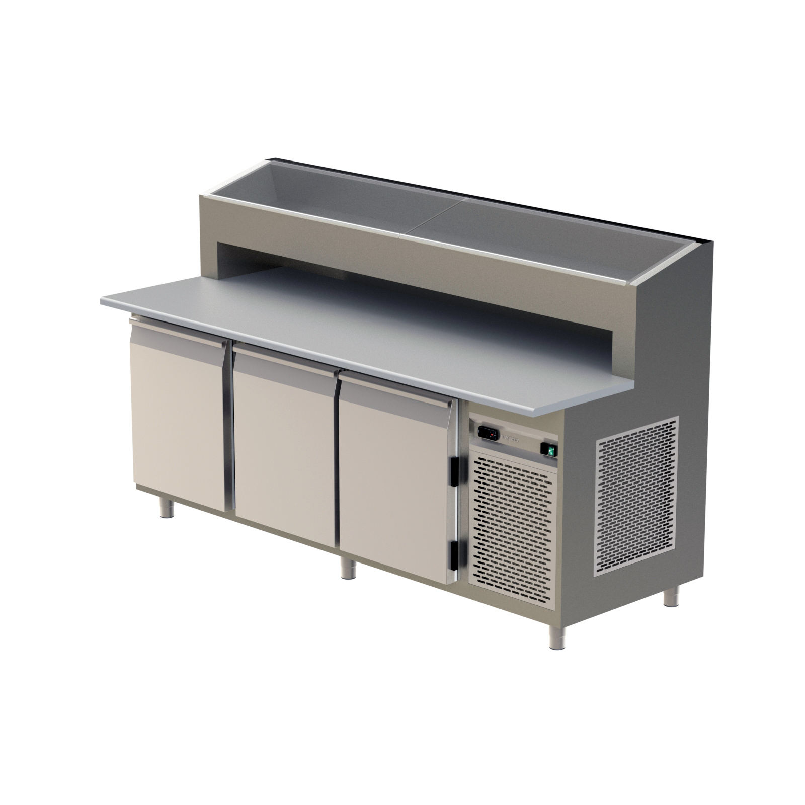 - Förses med upphöjd kylränna med lock anpassad för 1/3 GN-kantiner.