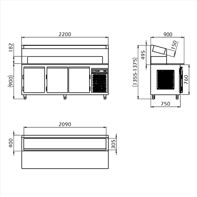 - Dimension (BxDxH): 2200x900x900mm