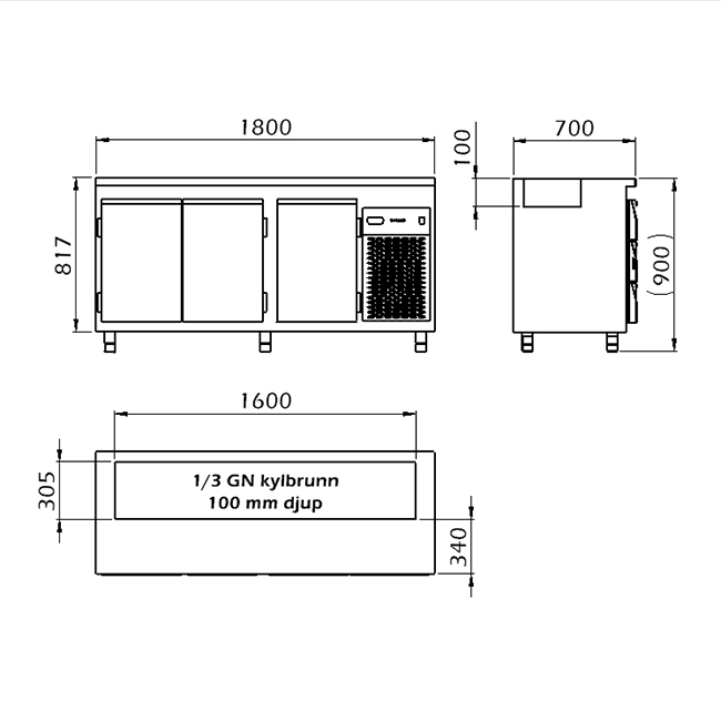 • Vattenkyld-ränna 100 mm djup anpassad för 1/3 GN-kantiner.